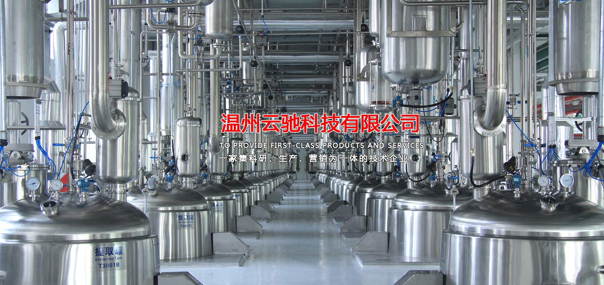 溫州云馳科技有限公司是一家集科研、生產、營銷為一體的技術企業(yè),本公司生產的中藥提取、濃縮、蒸發(fā)及有機溶媒回收設備,衛(wèi)生級不銹鋼容器設備,衛(wèi)生級管道配件等系列產品,范圍涵蓋制藥工程、乳品工程、生物工程、化工工程等領域,目前,本公司產品包含八大系列和28類品種,分別為中藥提取設備、濃縮設備、純化分離設備,酒精回收設備,配液系統(tǒng)設備,食品乳品機械設備,不銹鋼容器設備以及輔助配套設備等,力爭為廣大客戶提供滿意的交鑰匙工程服務,目前,本公司已與多家科研院所及相關設計單位、行業(yè)協(xié)會、技術專員合作,建立了完善的科研開發(fā)體系,技術力量雄厚,擁有先進的質量保證體系,我們將打造一支素質高,技術精,服務熱情的職業(yè)化隊伍,為廣大客戶解決設備工藝上的需求和難題并為廣大客戶提供優(yōu)質的服務。